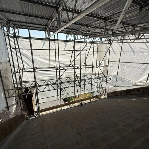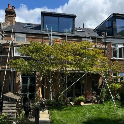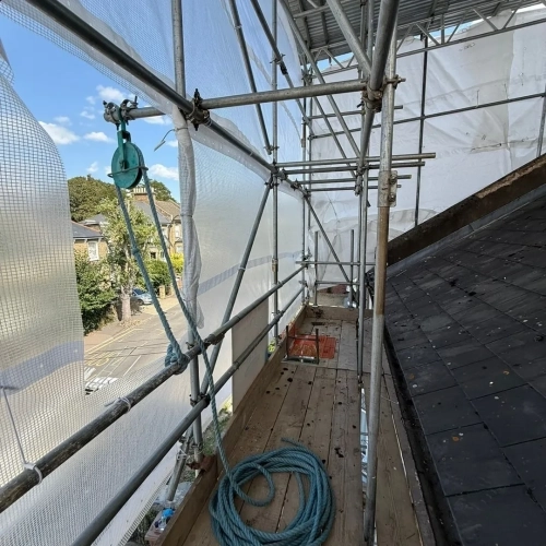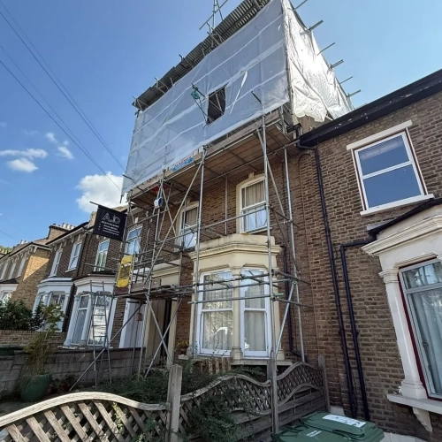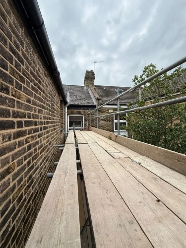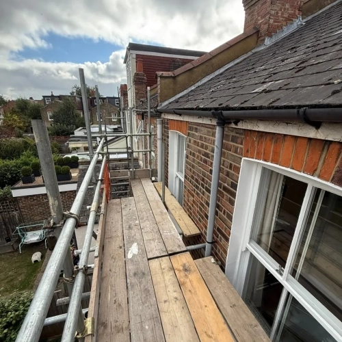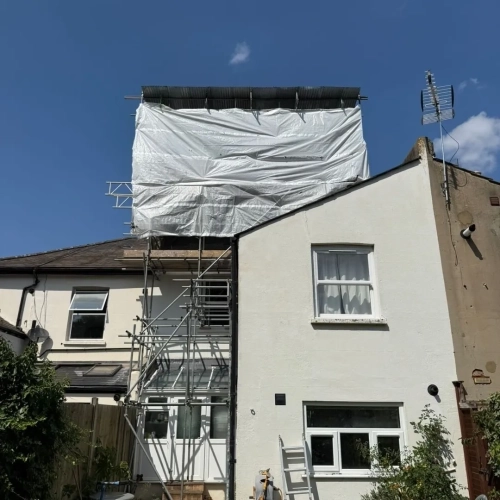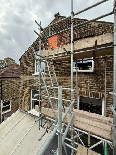 A temporary roof scaffold was installed in Lewisham to protect a loft conversion from the weather. ...